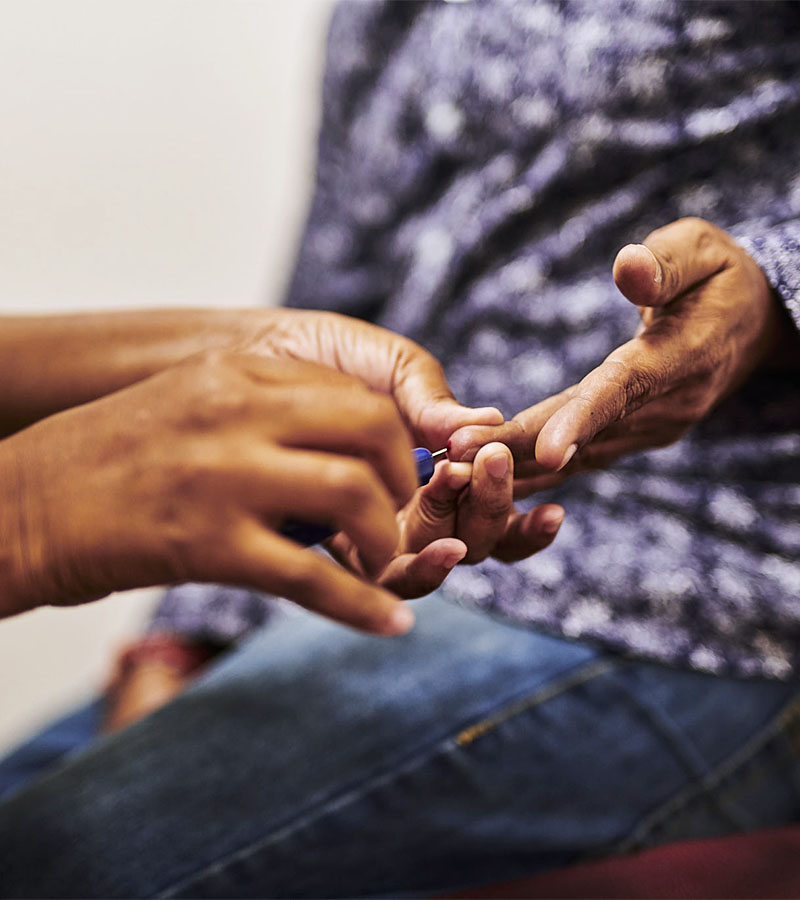 The screening is a quick process, whereby it involves taking a single drop of blood from your finger tip and analysing it in a blood glucose monitoring system.